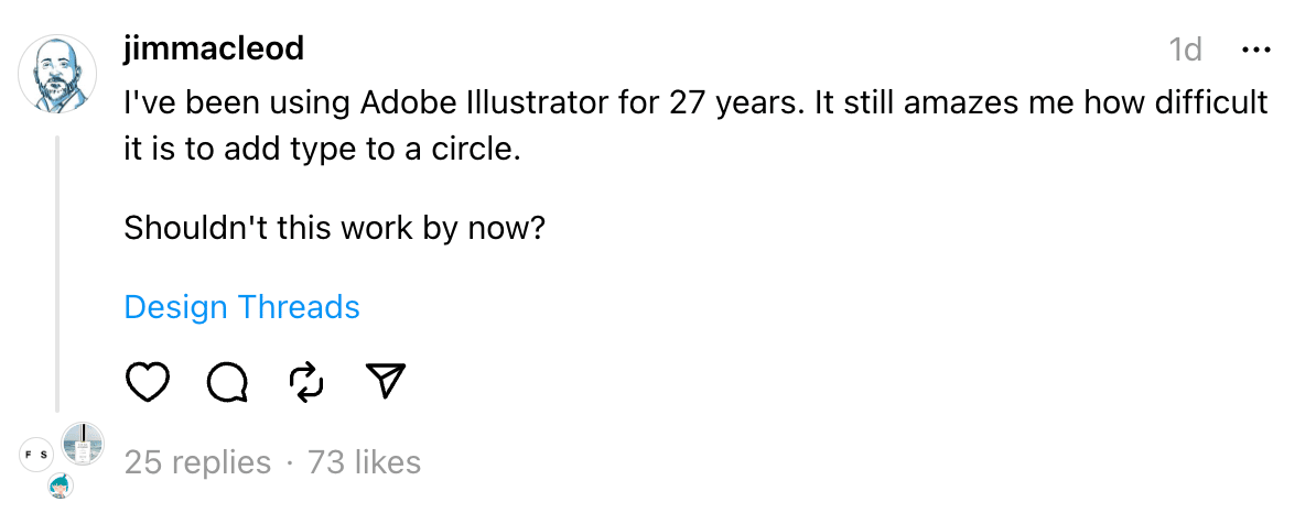 Why Do Marketing Leaders Often Get Laid Off First and Hired Last? I recently read a great rant by Liza Adams on this topic and she raises some great points. Too often, companies see marketing as an expense. So when things get tight, it's easiest to cut the segment of the company where the money goes out and it isn't obvious to see how that leads to money coming back in. Even my mother, who spent most of her career at Fortune 100 companies said, "Marketing is just the department that spends all the money." Yes, marketing spends money. But if companies don't spend that money, it reduces the money coming in. The difference between cuts in marketing and cuts in other departments is that pain won't be felt for a while, based on the average length of deals. Cutting marketing is a perfect example of short-term thinking. For executive teams focused on the next 90 days, it can be hard to justify the value marketing provides. I once had a CEO ask me, "what if we just stopped marketing altogether? What impact would it have?" That was scary to hear. But he was a numbers guy. We worked to show marketing's direct impact on revenue. Thanks to digital marketing and marketing technology stacks that can track engagements from first touch through closed won, marketing has the ability to show its value to the company. On the other hand, I just attended a webinar with Rand Fishkin where he discussed the end of marketing attribution. Cutting designers causes similar damage. But this time, it's damage to the brand. Investing in design shows that companies are willing to invest in all facets of the product or service. Bad design, or bad UX, makes people question everything else. It's tough out there for designers right now. Too many are getting cut at a time when companies should be focusing on better experiences for their customers and prospects. Just like marketers had to become more data driven, designers should be able to show how their work can impact the bottom line of the company. Find the connections between what you do and what it means to the people who make the big decisions. Affiliate of the Week When I built the After Design website last year, It was the first time I used Elementor to customize my WordPress site. I've used a bunch of themes and frameworks since I built my first WordPress site in 2007, and Elementor was the easiest website builder I've used. Funny Thread of the Week The other day I was struggling with adjusting some text on the path of a circle in Illustrator. I posted a Thread about it and apparently many others feel the same frustrations. Check out some of the replies ππ» β HOW CAN I HELP YOU?