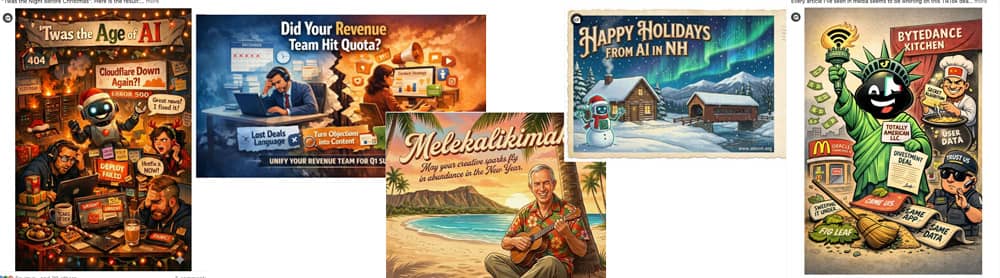 Also, practically every ChatGPT image you see online uses the same illustration style. You might think you're creating something new and unique, but everyone else is using that same style. Here's a sampling from my LinkedIn feed that I saw while scrolling yesterday.