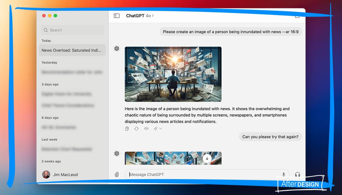 Dall-E 3 Prompt: Please create an image of a person being inundated with news --ar 16:9